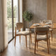 Upholstered in a premium textured fabric, the seat is both visually appealing and practical, resisting everyday wear and tear. The chair's solid construction ensures stability, while the design remains light and unobtrusive, perfect for blending into minimalist or contemporary interiors.