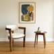 Introduce a bold and artistic statement to your interiors with this contemporary walnut dining chair. Its sculptural frame, carved from premium walnut wood, showcases a fluid and organic design that offers both visual intrigue and structural integrity. The cushioned faux leather seat enhances comfort while adding a touch of modern luxury. Perfect for elegant dining rooms or as a standalone accent piece, this chair is a masterpiece of craftsmanship. Custom upholstery options, including fabric and faux leather, are available upon request.